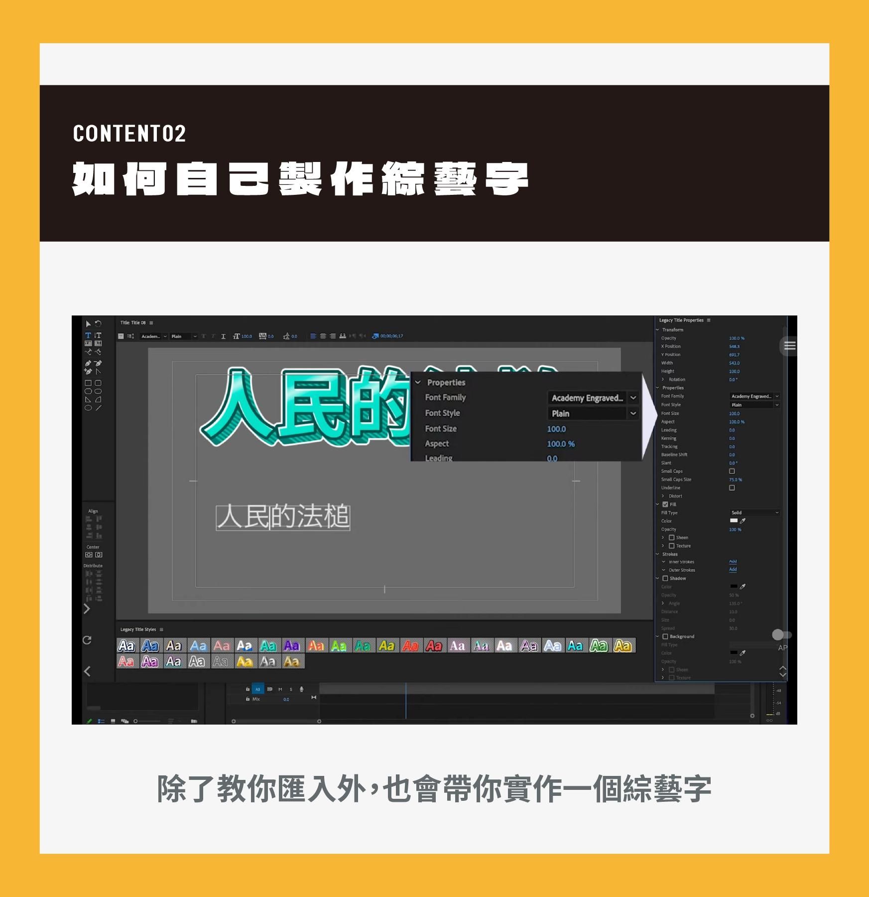 教你在Premiere Pro裡還原出百萬YouTuber常用的綜藝字